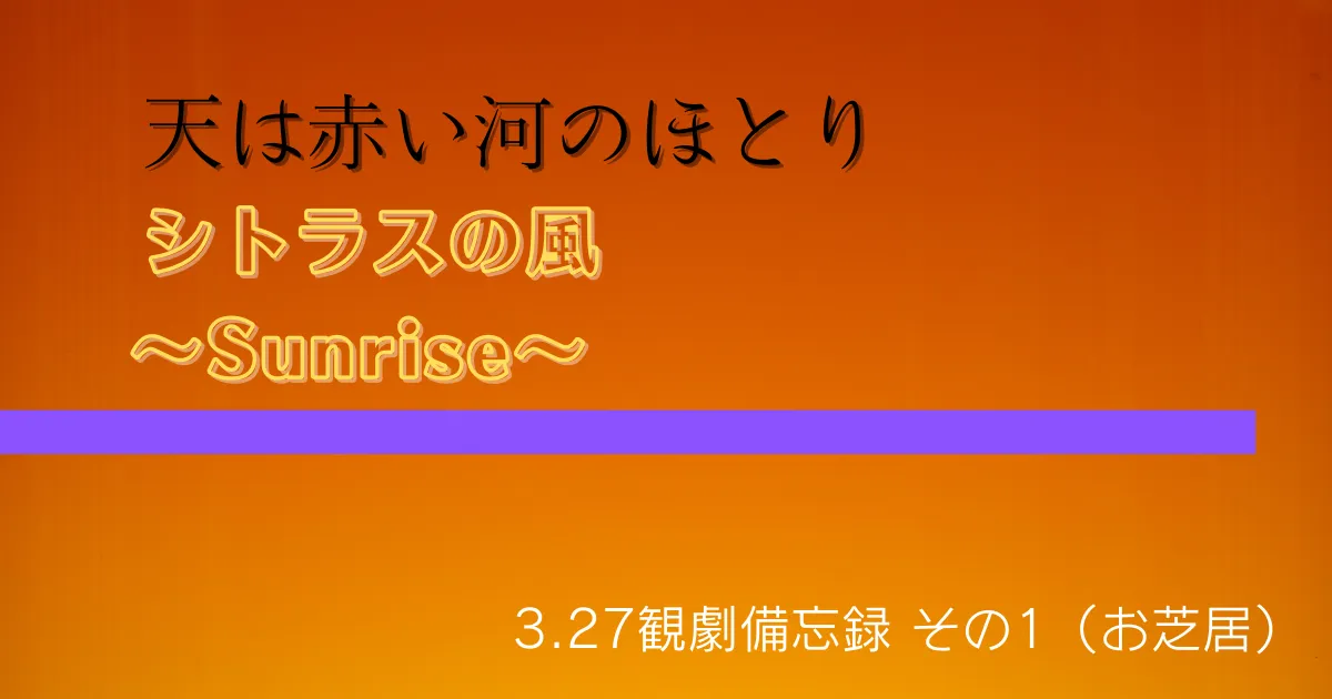 【宙組】天は赤い河のほとり/シトラスの風~Sunrise~ 3.27観劇備忘録 その1(お芝居)
