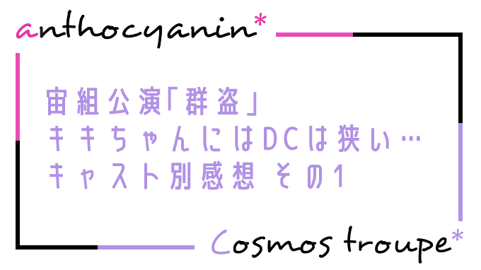 ちょっと間があいてしまいましたが、先日観劇しました「群盗」の、今回はキャスト別の感想になります。