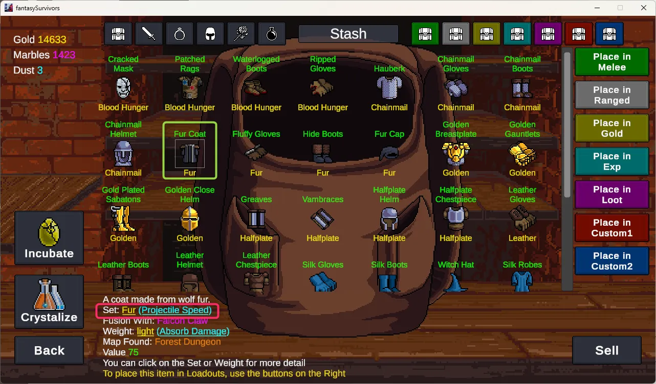 最初だと防具だけあるけどアーティファクトがない…というシーンも多いですが、なるべくセットボーナスの恩恵を受けられる装備を選ぶと攻略、Farmともにぐっとやりやすくなります。
