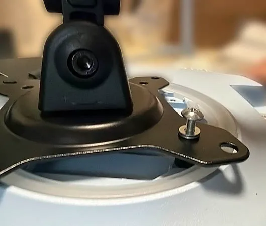 そこで、モニターアームに付属していたワッシャー(円形の平たいやつ)を間に挟み、ネジを締めてみると…。
