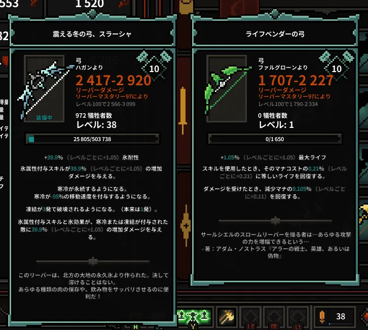 さらにスロームリーパーを使い続けることでレベルがあがり、さらに特殊な効果を持つ「原初のスロームリーパー」へと進化…と、武器のやりこみ要素自体もたっぷり。