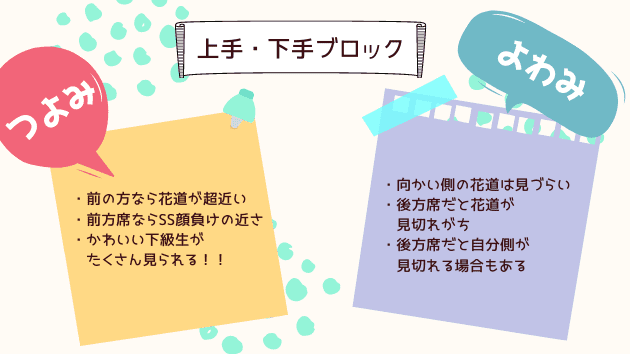 演目のパターンにもよりますが、上級生の方が来やすいエリアかなと思います。